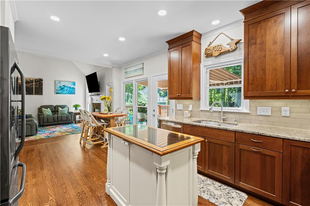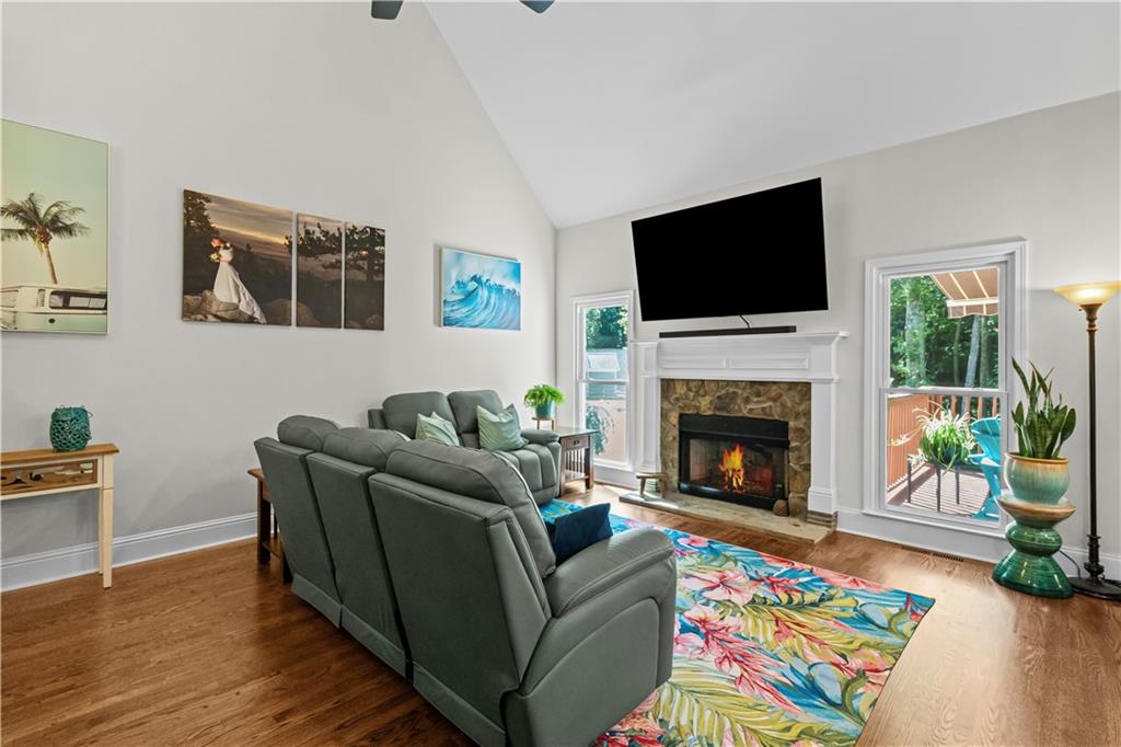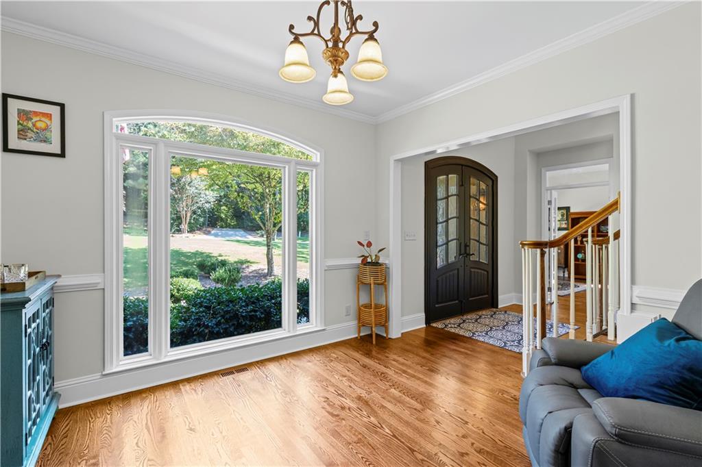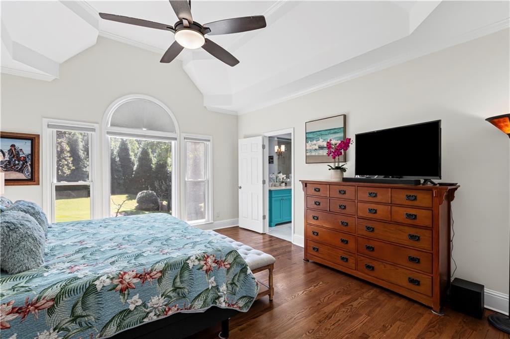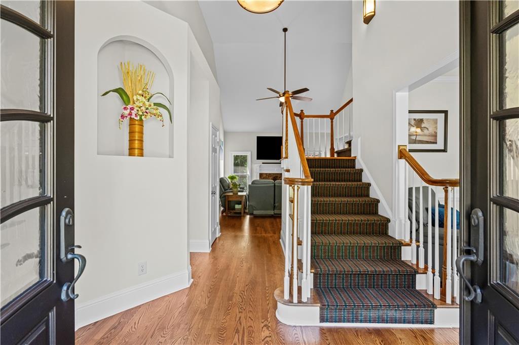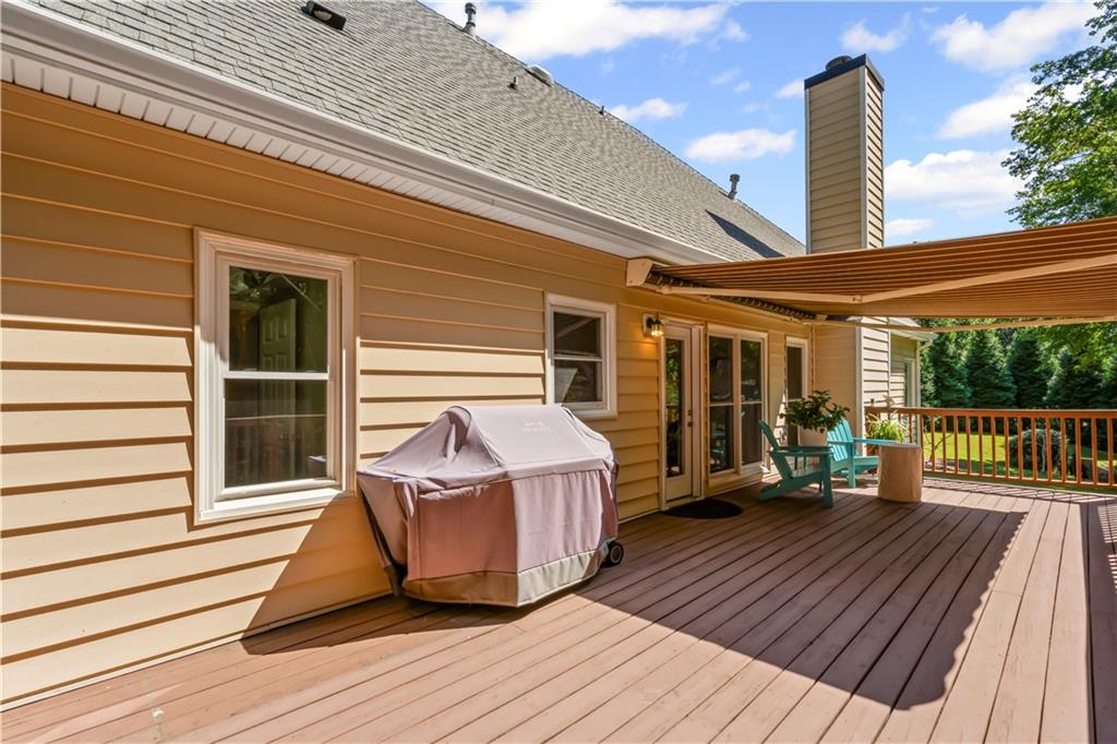 $4500 Lender Credit for closing by 11/1 with Barrett Financial Group, LLC. Run, don't walk! This Alpharetta gem with Cherokee taxes won't last! Opportunities like this are rare and this one checks all the boxes. Stunning two story home on a full walk out basement sits proudly on a 1 acre private lot. Step inside to find newly finished hardwood floors throughout the main level. A sun soaked chef's kitchen featuring granite counters and stainless steel appliances opens to the inviting living room and greets you with views of the expansive backyard. Walk out onto your oversized deck off the kitchen to enjoy morning coffee. Need some shade while you're out there? Extend the remote controlled retractable awning to create the perfect spot. The master suite is also on the main with a newly remodeled spa like bath featuring an oversized shower with dual showerheads and a professionally curated closet system. Upstairs, you'll find three spacious bedrooms each with hardwood floors and perfectly tailored closet systems! The finished basement offers an additional bedroom and full bath, plus a wet bar and wine fridge. Perfect for entertaining. Enjoy your outdoor space in all weather on the basement patio with under deck system. The serene backyard invites you out to come meander along the creek and offers tons of space for all of your favorite activities. Garage boasts a sleek epoxy floor, making it ideal for your car collection or workshop. This home is truly a rare find with elegance, comfort, and functionality all in one.