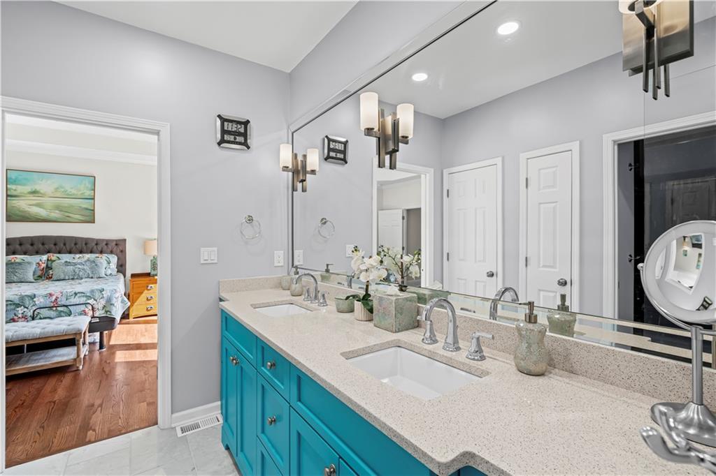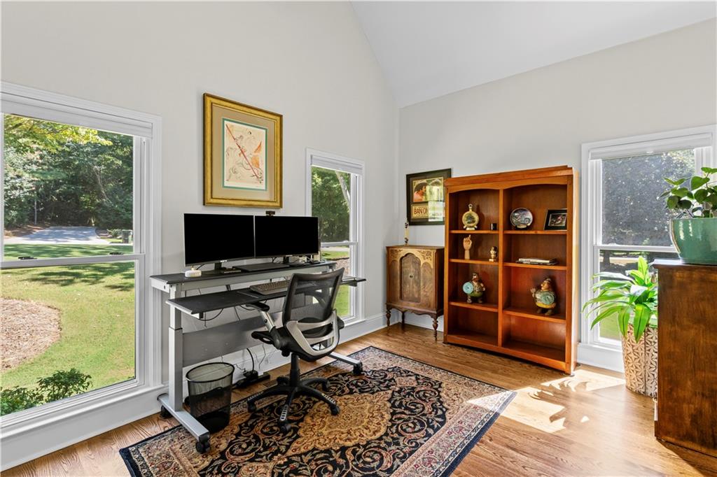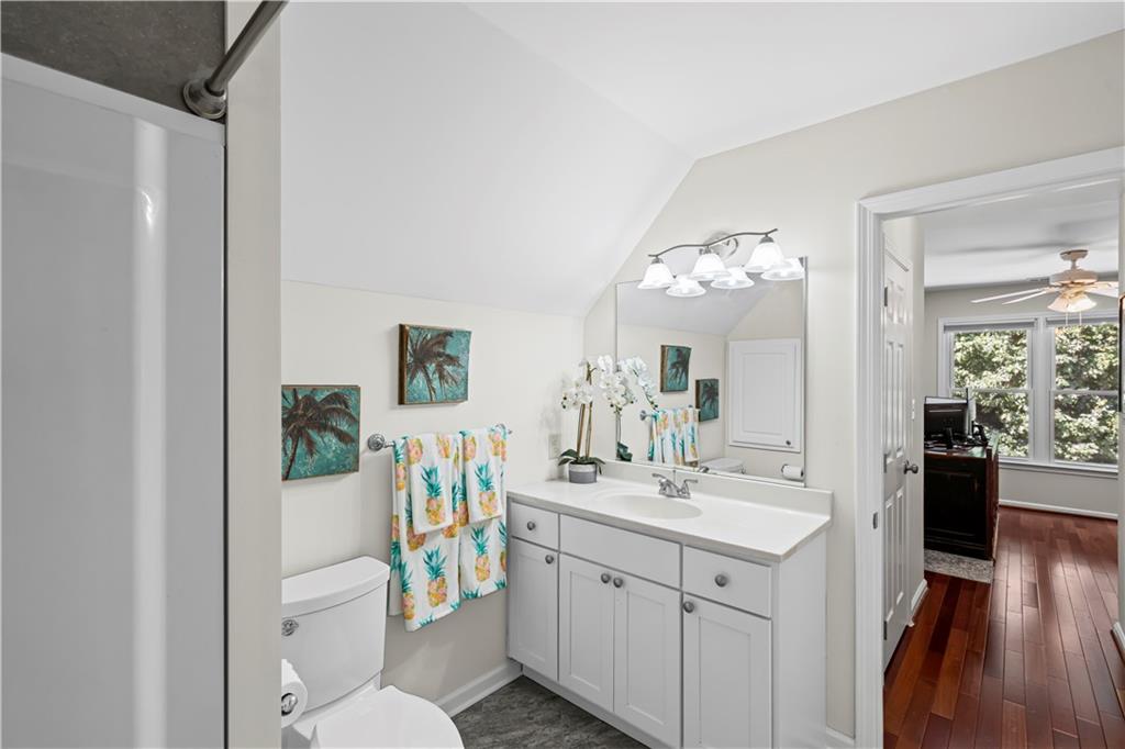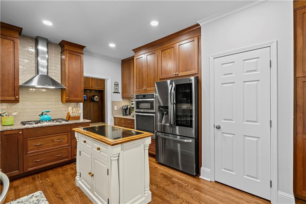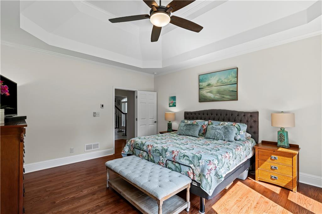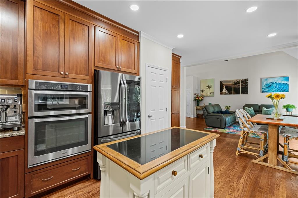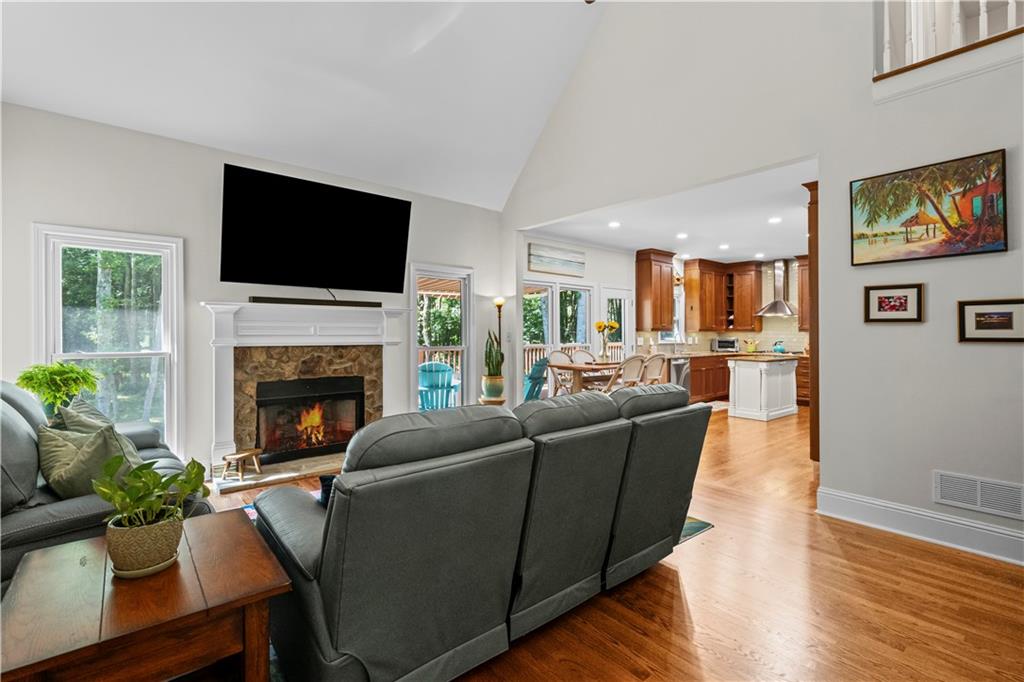 $4500 Lender Credit for closing by 11/1 with Barrett Financial Group, LLC. Run, don't walk! This Alpharetta gem with Cherokee taxes won't last! Opportunities like this are rare and this one checks all the boxes. Stunning two story home on a full walk out basement sits proudly on a 1 acre private lot. Step inside to find newly finished hardwood floors throughout the main level. A sun soaked chef's kitchen featuring granite counters and stainless steel appliances opens to the inviting living room and greets you with views of the expansive backyard. Walk out onto your oversized deck off the kitchen to enjoy morning coffee. Need some shade while you're out there? Extend the remote controlled retractable awning to create the perfect spot. The master suite is also on the main with a newly remodeled spa like bath featuring an oversized shower with dual showerheads and a professionally curated closet system. Upstairs, you'll find three spacious bedrooms each with hardwood floors and perfectly tailored closet systems! The finished basement offers an additional bedroom and full bath, plus a wet bar and wine fridge. Perfect for entertaining. Enjoy your outdoor space in all weather on the basement patio with under deck system. The serene backyard invites you out to come meander along the creek and offers tons of space for all of your favorite activities. Garage boasts a sleek epoxy floor, making it ideal for your car collection or workshop. This home is truly a rare find with elegance, comfort, and functionality all in one.