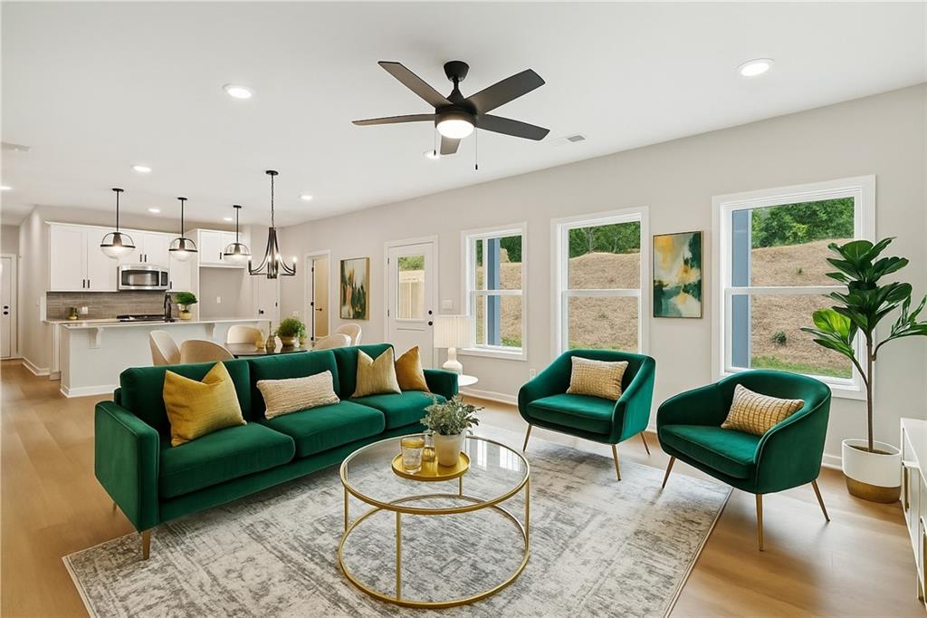 Traton Homes, Brooks A is move- in ready now! LIMITED TIME SPECIAL UP TO $5,000 CLOSING COST PLUS REFRIGERATOR, WASHER & DRYER INCLUDED, and with our Preferred lender up to $10,000 in closing costs/rate buydown- SEE AGENT FOR DETAILS. The stylish two story townhome offers a spacious open concept, layout that seamlessly connects the kitchen, family room, and dining areas. The gourmet kitchen features beautiful quartz countertops, stainless steel appliances, white kitchen cabinets, walk-in pantry, and large kitchen island with seating for four and pendant lighting. The living room with lots of natural light is perfect for relaxation and entertainment! Your dining area is great for gatherings or a cozy family night in. Walk outside to your extended private patio great for relaxing, grilling, or your family pets! Full oak treads lead to your loft area with LVP on the second floor, which is a perfect flex, space, office space, or sitting area. The oversized primary suite, which is the entire width of the home, can accommodate a king bed and plenty of furniture! Your oversized walk-in closet will impress, and your beautiful bathroom with tile and glass shower, double vanity, and tile floor will be a perfect retreat to freshen up at the end of your day. Amenities include a beautiful pool & cabana, alongside a nature walking trail that spans the length of the community. You'll be nestled near downtown Powder Springs, and just minutes from downtown Hiram! Traton Homes has been voted Best Builder in Cobb for the last five years in a row! Come see why! All applicants must pre-qualify with one of our preferred lenders, regardless of who they choose for their loan. All incentives are tied to a preferred lender only. Perfect for entertaining for the Holiday's.