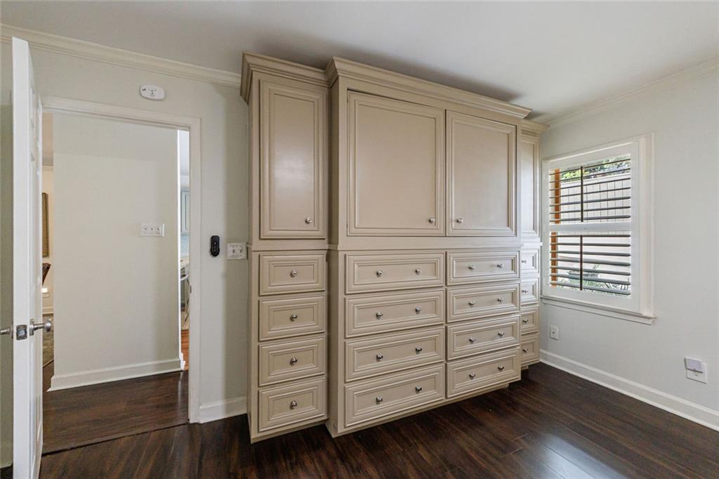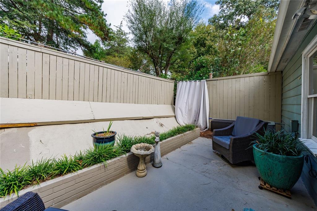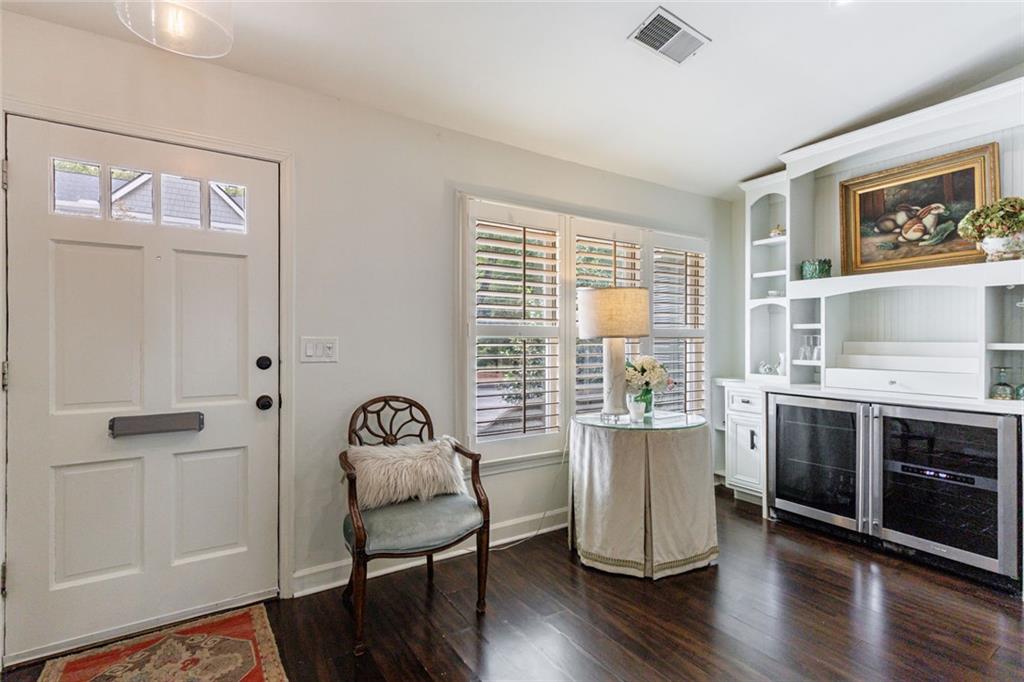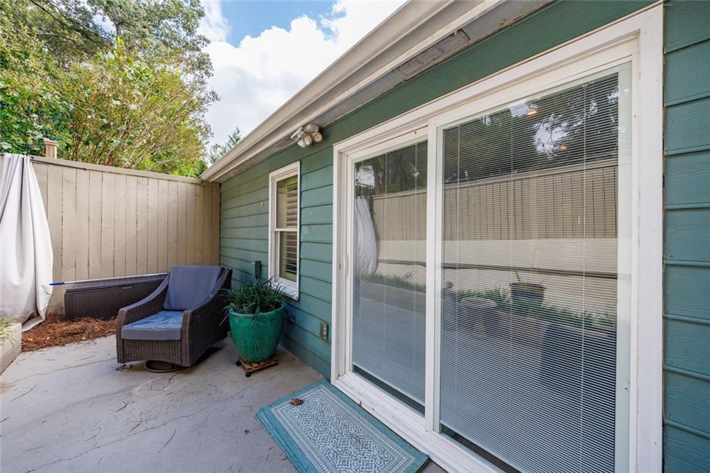 This charming 2-bedroom, 2-bath bungalow sits in the heart of Brookhaven—just a short stroll to favorite restaurants, shops, and all the neighborhood spots you love. Inside, you’ll find an inviting open floor plan that connects the kitchen, dining area, and family room. The kitchen features stainless steel appliances, granite counters, an island with breakfast bar, and a handy pass-through window that keeps everyone connected. Framed by custom plantation shutters across all front facing windows, the inviting family room draws you in with a cozy wood-burning fireplace, built-ins for display or storage, and a handy beverage chiller that makes relaxing or entertaining a breeze. Step outside to enjoy a welcoming front porch and a private back patio that’s perfect for morning coffee or quiet evenings. Just across the parking lot, a peaceful neighborhood green space offers wooded views that make you forget you’re in the middle of the city. This is the kind of home that feels good the moment you arrive—and even better once you’re here.